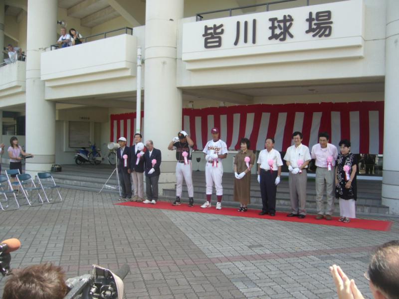 なんて、聞いたときは思っていたのですが、今日、除幕式のときに楽天2軍の松井監督、巨人2軍監督の吉村監督が挨拶し、皆川氏との思い出を語っていて