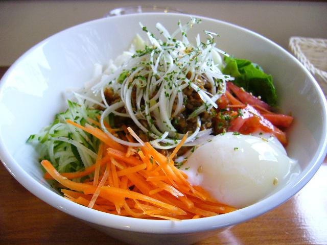 野菜シャキシャキ、ひき肉たっぷりに半熟卵がマイルド。