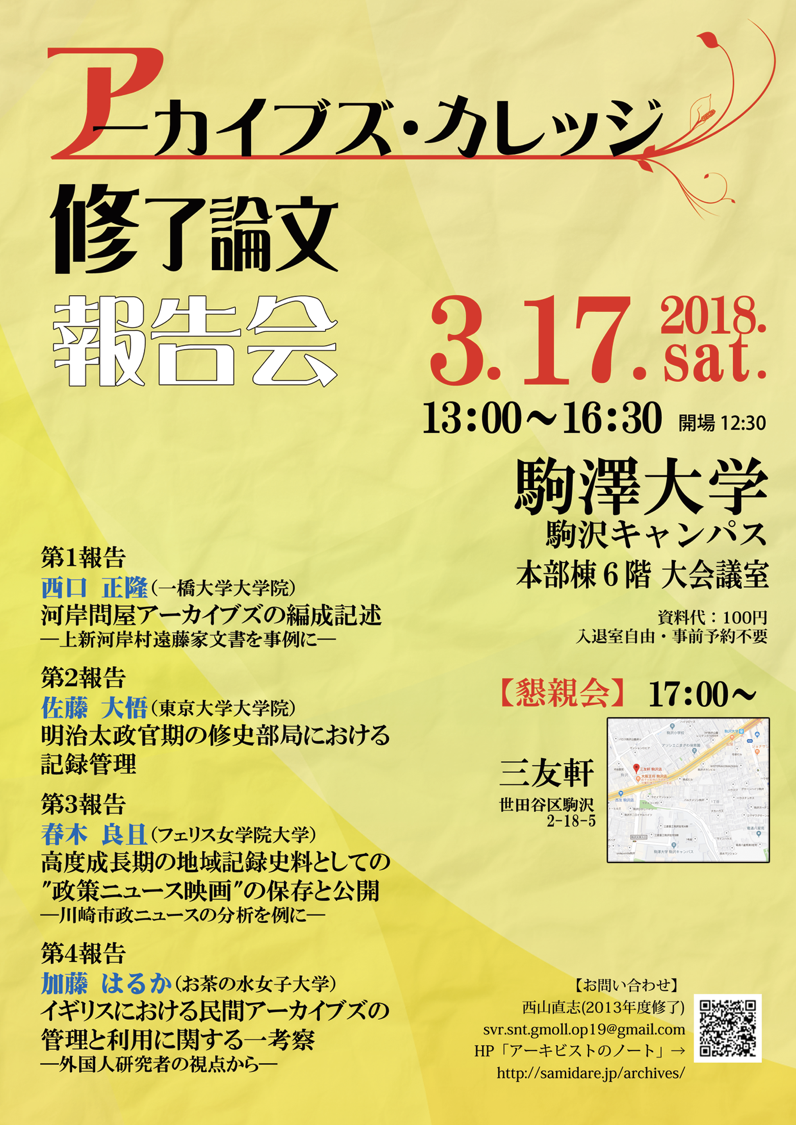 ▼2017年度アーカイブズ・カレッジ修了論文報告会のご案内