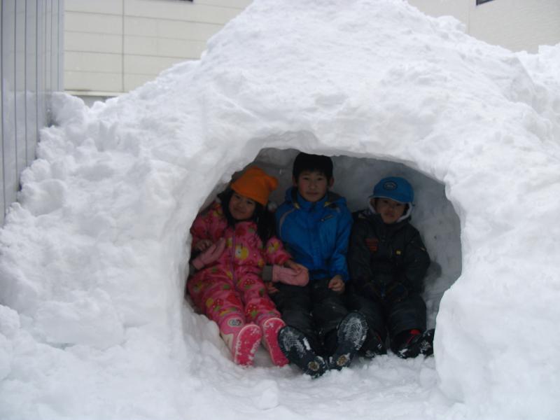 カマクラつくっちゃいました〜!!子供達が三人すっぽり入ってしまう大きさです!!