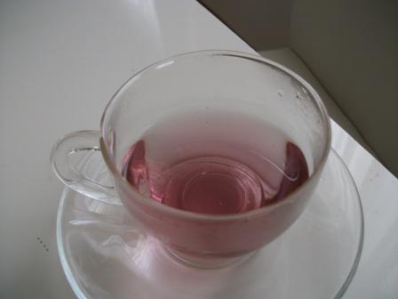 ブルウマロウという不思議なハーブティ!!とってもきれいなブルーのお茶です。でもレモンを入れるとピンク色に変わるんですよ。普通のレモンがなかったので、ヤングリビング社の食品添加物として輸入がみとめられているレモンの精油をいれてのんでみました!!普通の精油は絶対に飲めませんので注意してくださいね!!