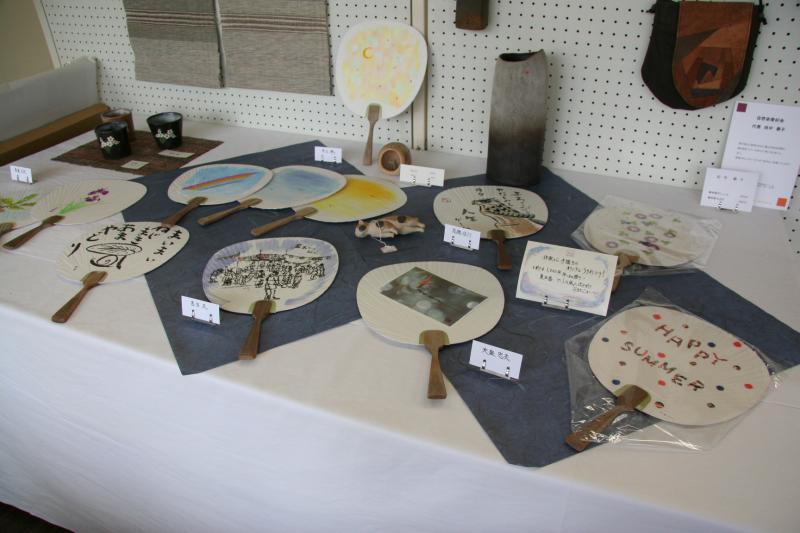 作家さんが気軽にうちわに絵や書を描いていただいた作品がたくさん並んでいます。