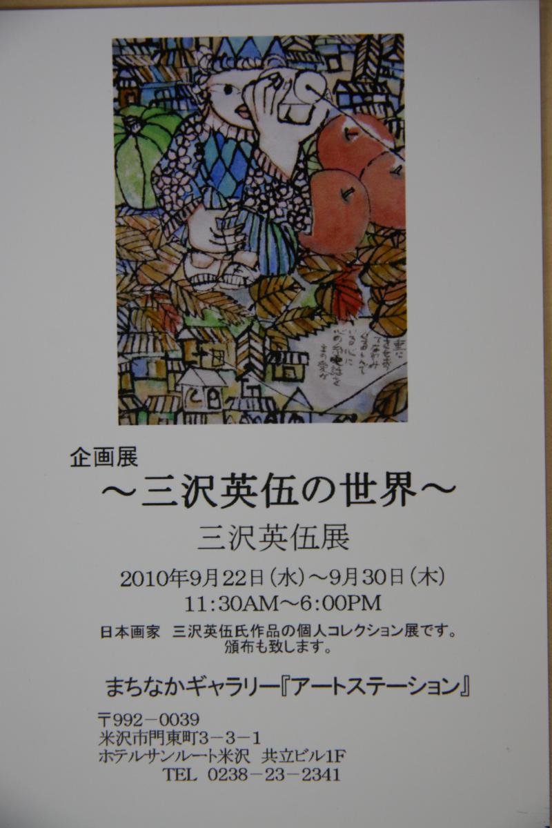 「アートステーション」では、三沢英伍さんの作品展を開催中です。今回展示している作品は、だいぶ前からずいぶん応援してこられた方の個人所蔵の作品です。収蔵したままにしておいても、見てもらえる機会がないので、多くの方に作品を見てもらえればと、お借りして展示しています。
