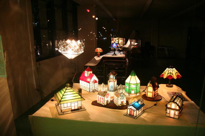 夜になって、作品が点灯すると、こんなにきれいに見えます。やはり電気がついてこそのステンドグラスですね。