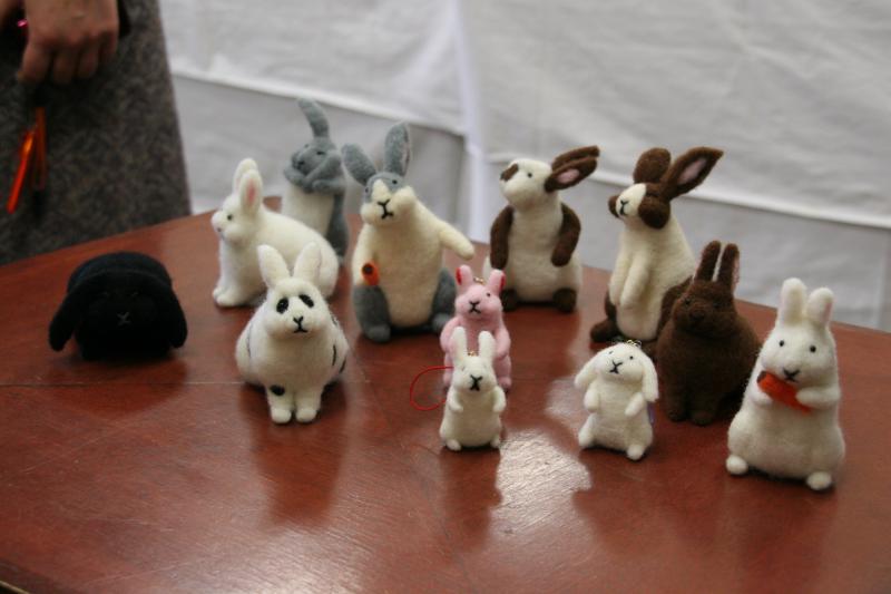 フェルト人形のかわいいウサギさんたち…化学繊維の中国製ではなく、一体ずつ手作りなので、表情やしぐさが全部違います。フェルトのナチュラルな自然の色は時がたつにつれてなじんできます。逢いに来ませんか。