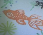 睦子から届いた暑中見舞い。可愛い金魚の判子を手作りしたんだって!