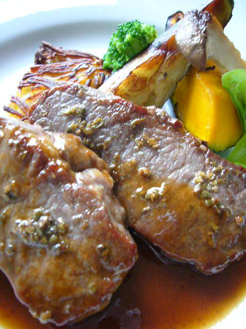 レアに焼いた肉は、ソースなど使わず、おろしたわさびでいただく。