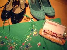 赤い度入りサングラスとアジアンチックなキャミと靴2個。