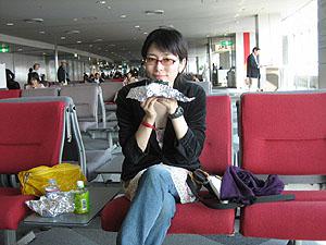 飛行機に乗る前にお手製のおにぎり食べたよ。