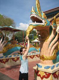お寺の外で竜と戯れる。
