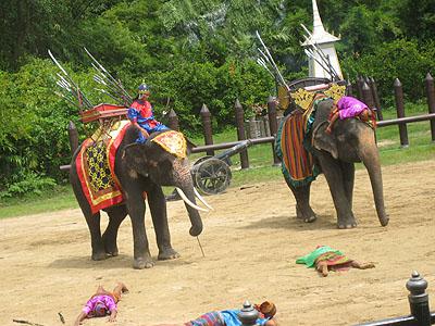 ゾウさんの上にも死体役。