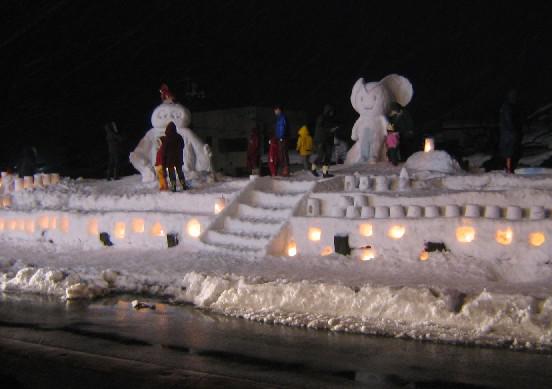 11日の雪灯篭祭りにて、旧ダイエー駐車場に出現しました。