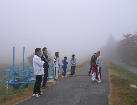 濃い霧のため、真っ白で周りの景色はほとんど見えませんでした。