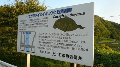 昭和53年、用の当時小学6年生だった斉藤正弘君と渡辺政紀君が発見。ヤマガタダイカイギュウは800万年前の海にすんでいたほ乳類で、ステラーカイギュウ(18世紀に絶滅)の祖先にあたるものではないかと考えられています。 海牛類の進化を知る上で世界的に貴重なもので県指定文化財となっています。