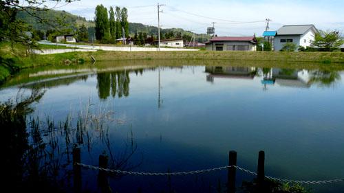 湖畔に鎮座する水神神社の神池。釣りや散策など地区民の憩いの場となっています。