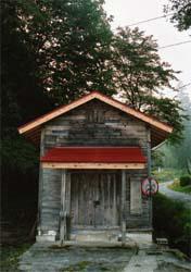 江戸時代は、村のことを「郷村」と呼んでいた。その郷を使って「郷倉」と呼ぶようになった。ここには、冷害や干ばつなどの不作時に備えて部落で米を蓄えておいた。郷倉は江戸時代から昭和まで続いてきた歴史がある。「恩賜郷蔵」と看板があるのは、昭和のはじめに天皇陛下から予算をもらって建てたから。現在は収納庫にして使っているが、ちょっと前は子供の卓球場にしていたこともあったな。