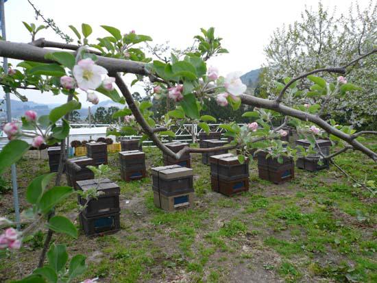 もともと、うちのりんごを受粉させるのが一番の目的で飼った。人工授粉では全部くっけるのは大変だからね。さくらんぼに置くようになって、なり過ぎて困るほどなった。(設楽弥八さん/和合平)