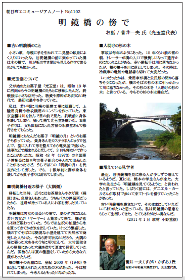 長年旧明鏡橋のそばで菓子店を営んでいらっしゃる菅井一夫さんにお聞きしました。エコミュージアムの小径第13集