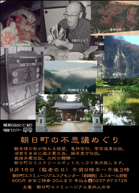 観音様の影が現れる絶壁、竜神信仰、菅原道真伝説、湖面を自由に遊ぶ葦の島、藤原実方伝説、義経弁慶伝説、大蛇のミイラ…