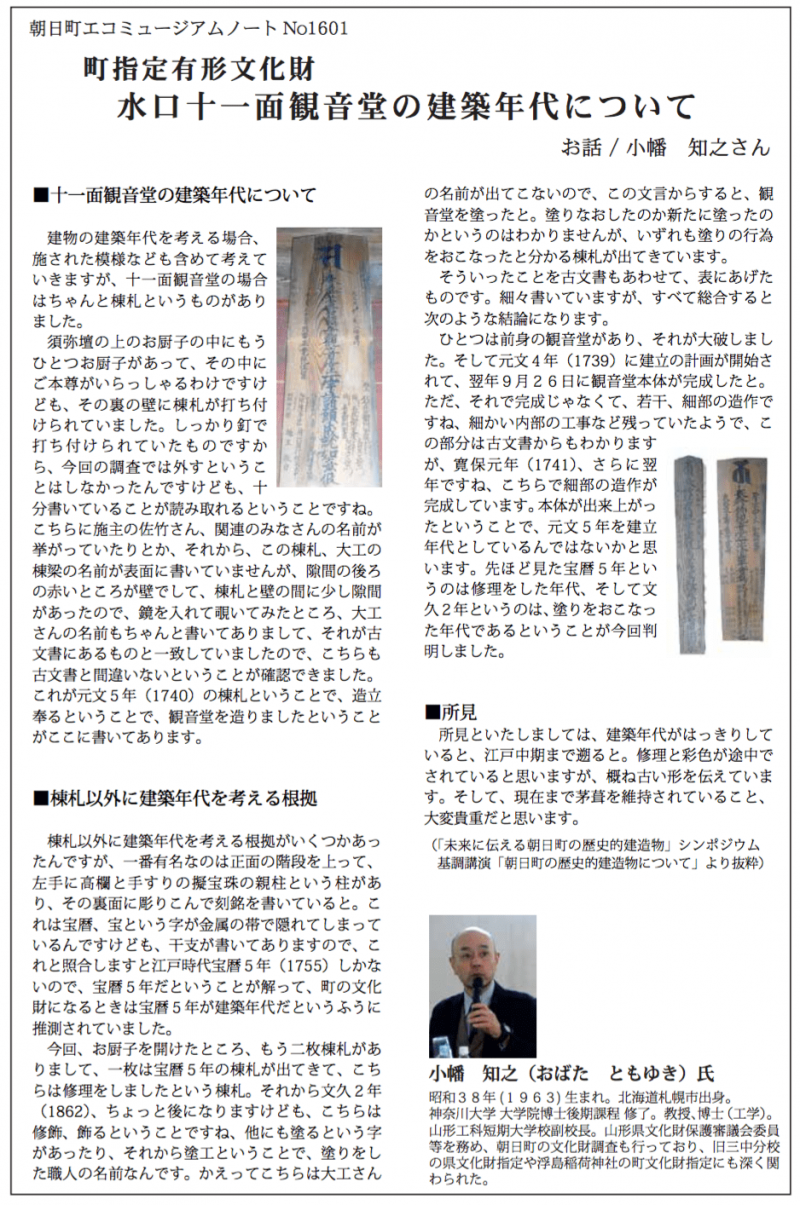 「未来に伝える朝日町の歴史的建造物シンポジウム」基調講演より抜粋