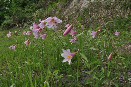 一本松公園のヒメサユリが、日当たりのいいところから咲き始めました。