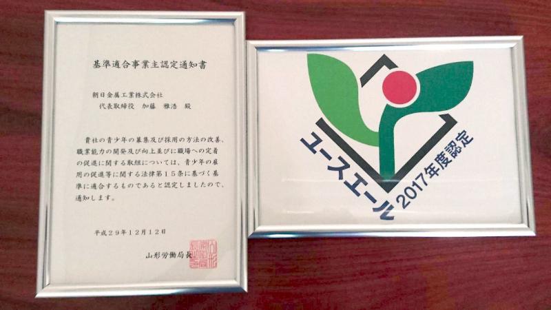 昨日、ユースエール認定制度の認証を受け、若者応援宣言企業として認めていただきました。