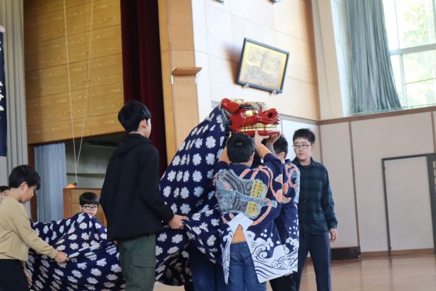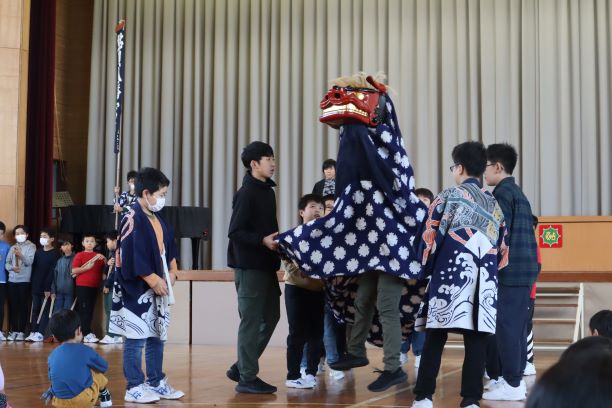 その後、体育館へ移動し、子獅子舞の披露がありました。