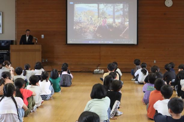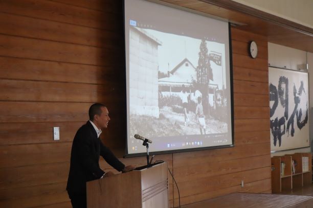今年度は、PTA会長佐藤真光さんより、「鮎貝松ヶ丘教育の森」についてのお話をしていただきました。