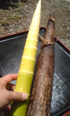 宅急便で荷物が届きました、ご依頼主は『茨城県 旅の人』と書かれています。3・4日前のお客様で自宅の裏で沢山タケノコが採れるから送るよ、期待しないで待っててと言い残して去って行った人…。初めて見るタケノコにびっくりです、美味しくいただきます。