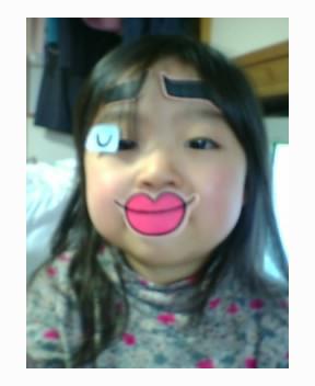 子供は回りから笑ってもらうことがうれしいのでしょう,わが家のおてんば娘のYIKちゃんも自分でお顔にシールをペッタンペッタン。