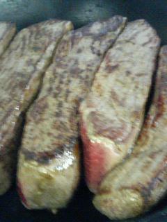 米牛の腿肉をたたいて、おつくりに取り合わせます.