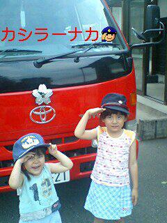 シャッターチャンスは突然!? 広報活動+ちょっとトイレ=この画像が撮れたのだ(^^♪ 一部マニアやこの組織の方なら、わかるでしょうね。赤い車、帽子2種類、そしてカシラーナカ お疲れSUMMERでした。