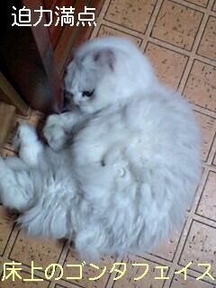 夜になると縁側でなく、台所の床で寝転ぶゴンタフェイス。人様の通るコースにデーンと陣取り、踏みつけるならコーイという挑発的行為をとります。 間違って踏みつける・・・この存在感が見えないことは絶対にないです。 動かざることゴンタフェイス。 昼だろうと夜だろうと、常に変化なし(~_~)