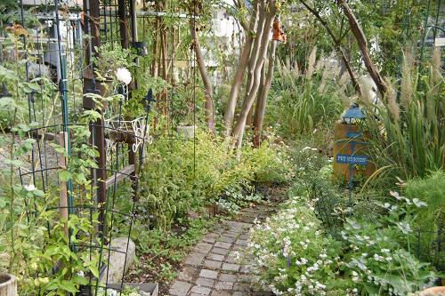 猫じゃらし草が群植、魚の群れが飛び跳ねて