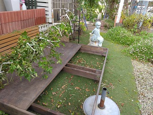 ↓今年製作した”簡易デッキ”は床板を外して撤去、