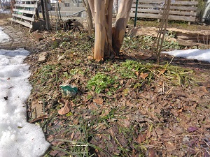 ↓ナツツバキの周辺も雪が無くなって、”ティアレラ“も