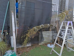 東側を囲っていたネットを外して、去年製作した簡易デッキを