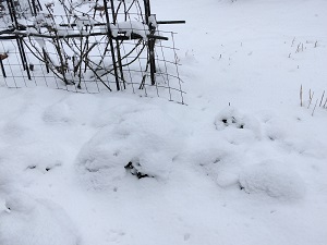 咲き始めたクリスマスローズも雪で埋もれて