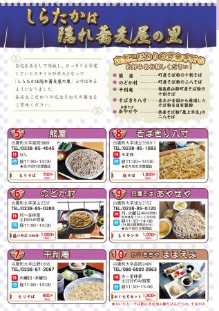 蕎麦屋をはじめ、ラーメン、菓子、カフェなど白鷹町の美味しいものが沢山詰まっています。