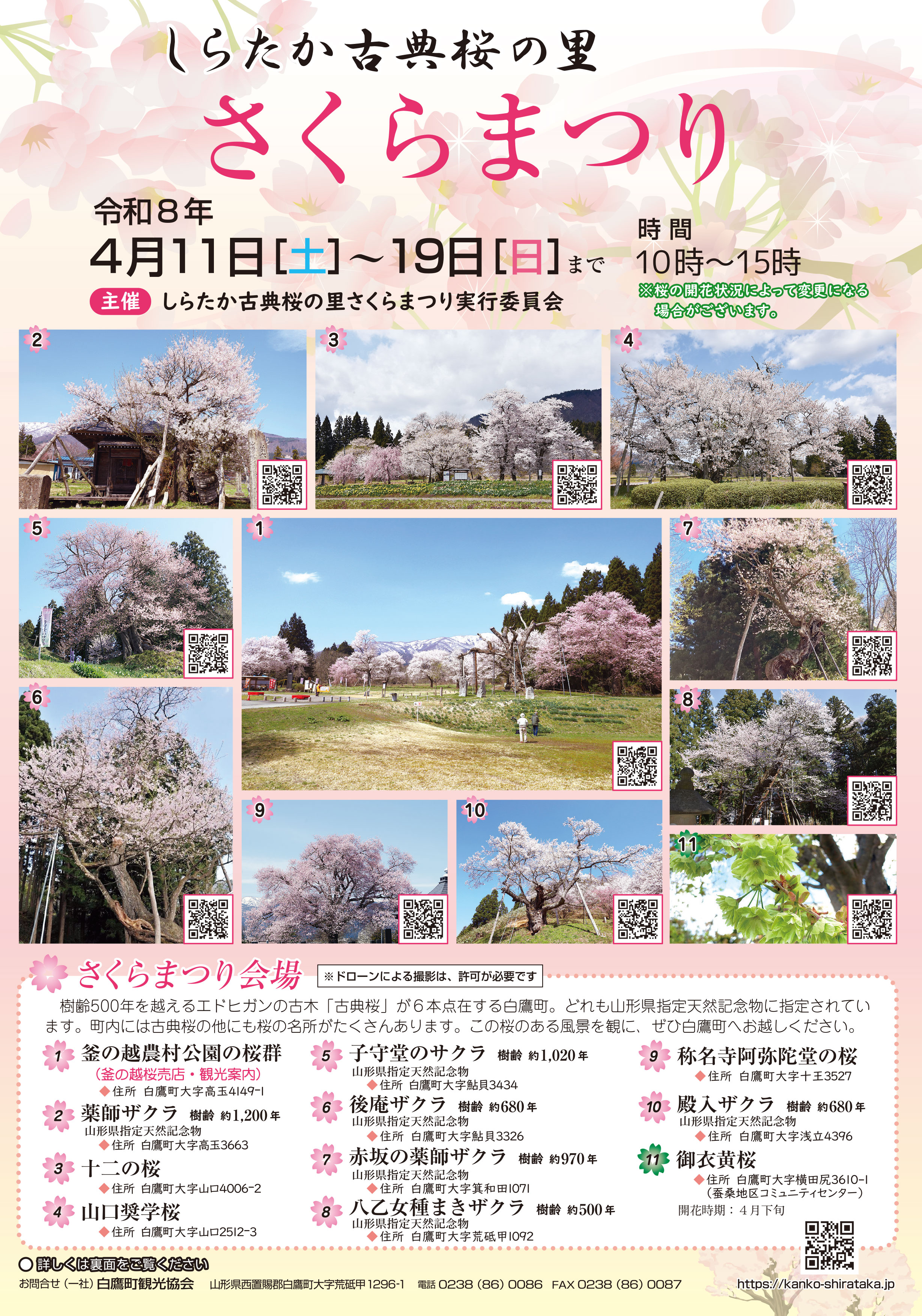 樹齢500年を越える白鷹町の古木「古典桜」ともに白鷹町の春をご堪能下さい!
