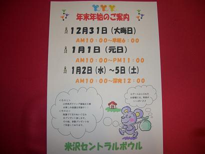 ▼米沢セントラルボウル★年末年始営業時間のお知らせ