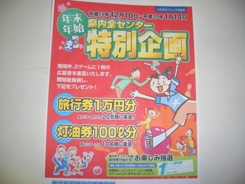 山形県ボウリング場協会 年末年始特別企画がまもなく終了いたします。