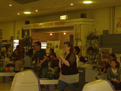 ▼米沢セントラルボウルにて国際交流会のボウリング大会