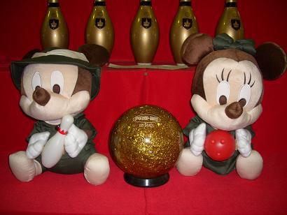 もらいました。そのミッキーとミニーちゃんにボウリングのピンとボール