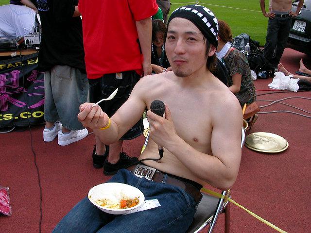 昼食中もマイクを片手にMCにぬかりなし・・・