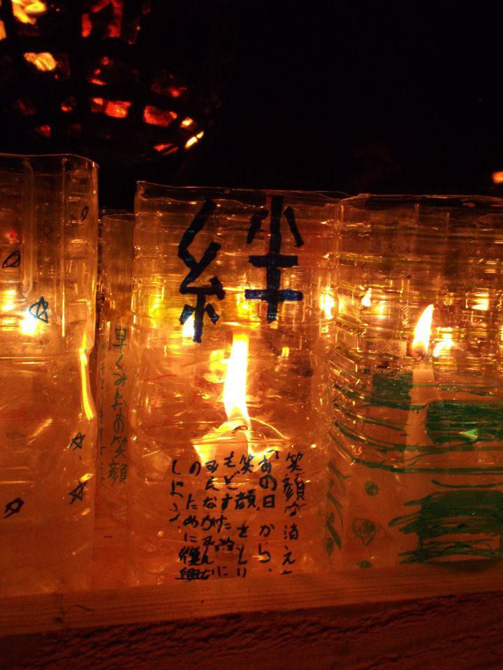 東北中のボーイスカウト500人が集まる大キャンプ。被災地からもたくさんの子供達が参加していました。指導者の皆さんに双子キャンドルの作り方を指導して、2日間にわたって製作会が行われました。『希望への絆』をテーマに点火され復興を祈りました。