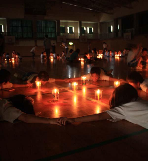 9月8日、福島市の蓬莱東小学校で双子キャンドル作りと点灯会を楽しんでいただきました。点灯はビニールカップにカラーペンでイラストやメッセージを描いて灯しました。各グループごとに灯火を囲みそれぞれの楽しみ方でいい時間を過ごしていました^^