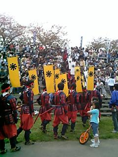 ふらふらしていると、こんな良き事にも遭遇します。この行列は「武田軍:高坂隊」が奇襲をかけるため、川の向こう岸へ移動中です。こんなに間近で見たの初めてで契係も少々興奮気味でした。