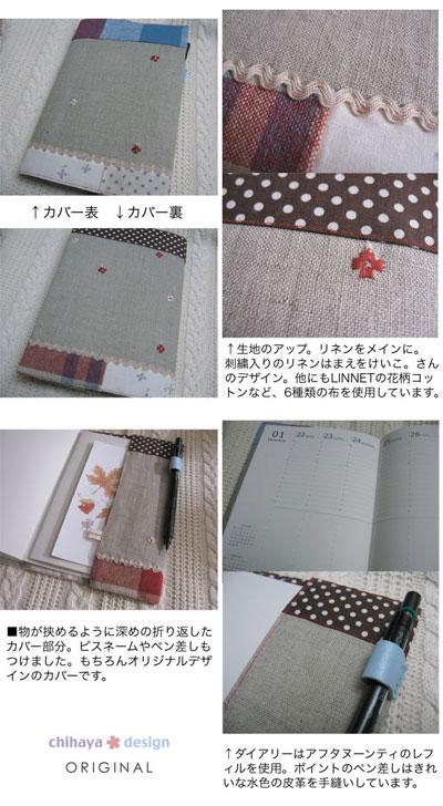 このスケジュール帳は、表に6種類、裏に1種類の布を