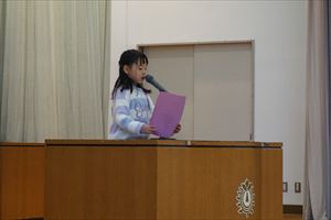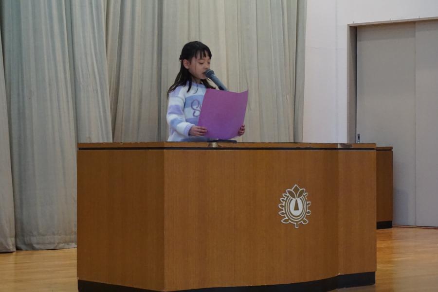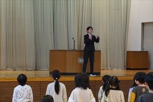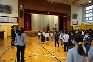 始業式の際に伝えた3つ、「まわりの人を大切にすること」、「挑戦すること」、そして「継続すること」を目をつぶらせて静かにふりかえってもらました。中にはこちらからの問いかけにうなずいている子も。